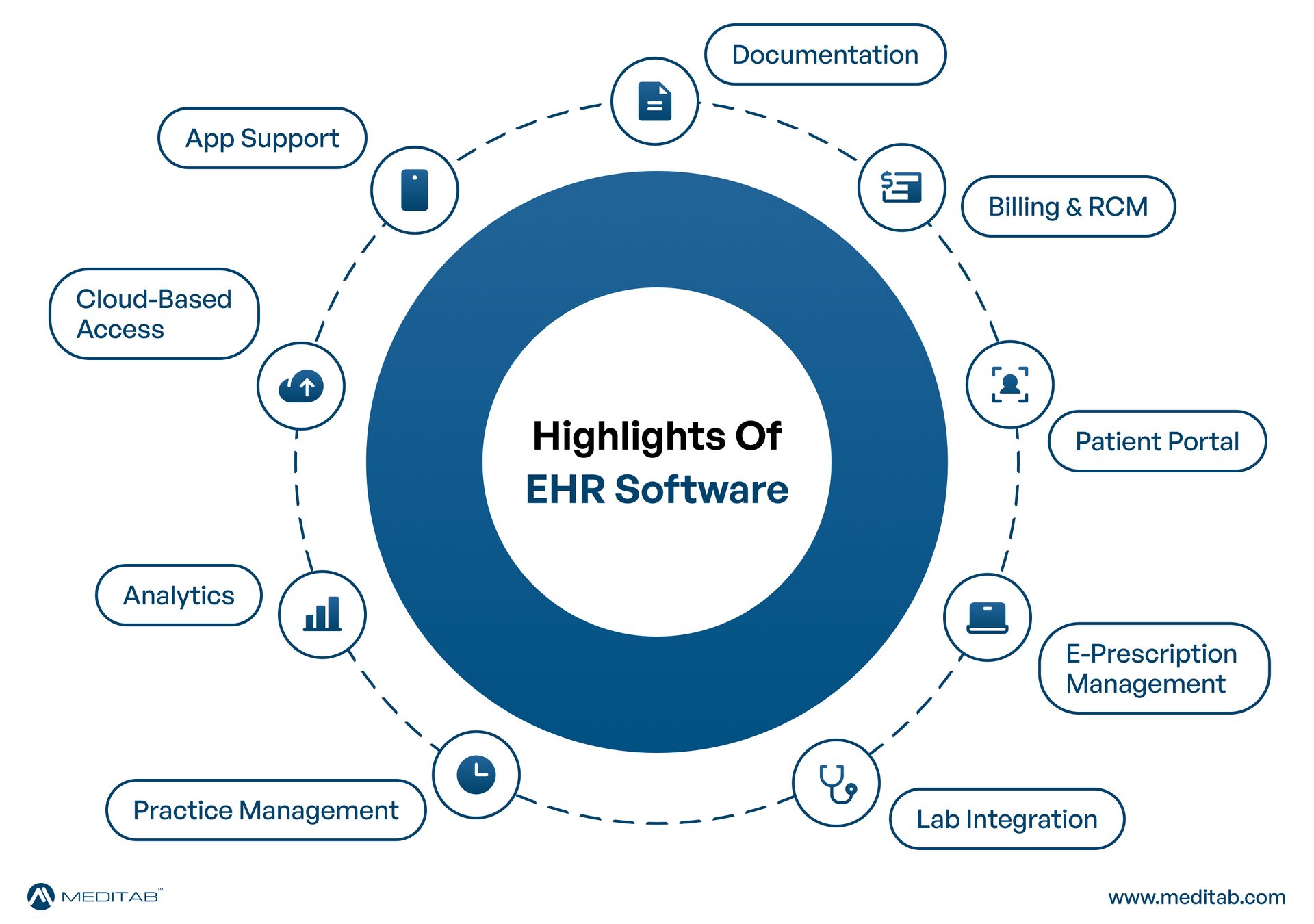 EHR systems offer integrated billing tools that link clinical documentation with claims and payments. Charge capture, coding support, claims submission, and payment posting within one platform help reduce errors and improve reimbursement efficiency. - E-Prescribing and Medication Management