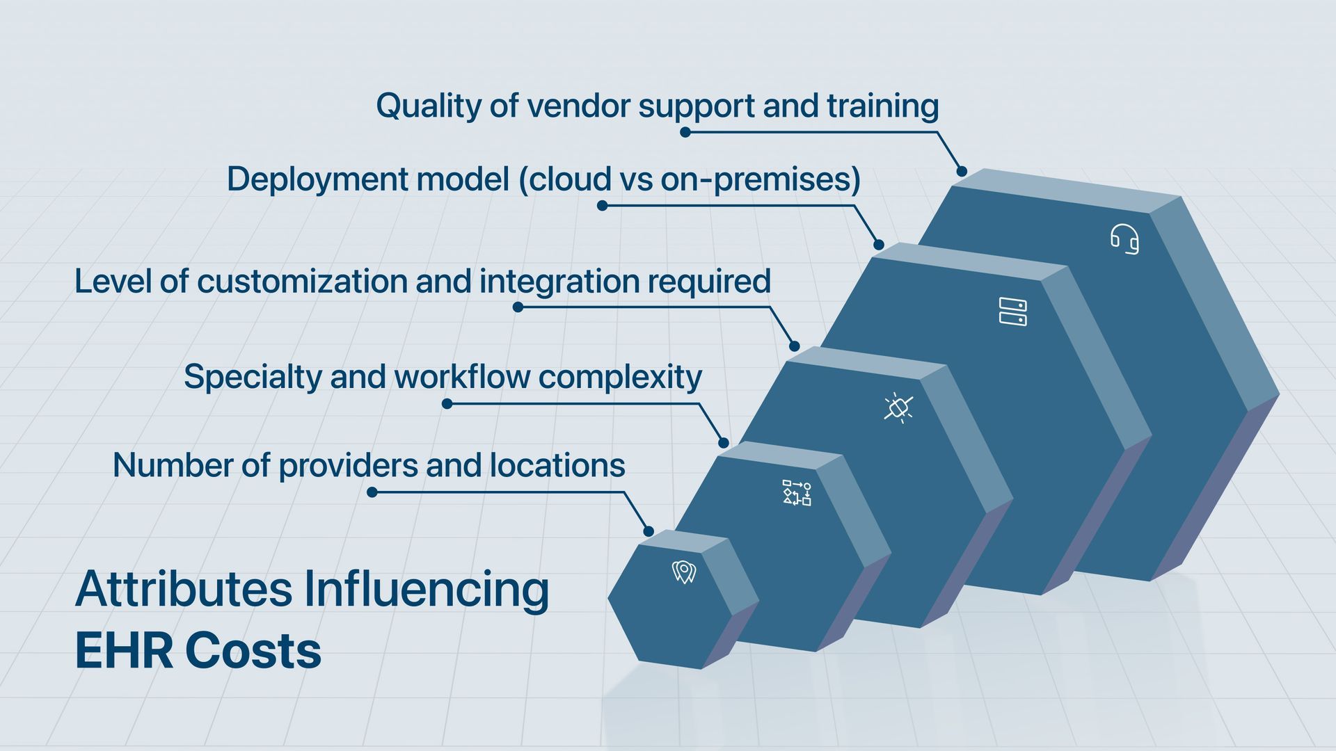 Industry reports depict that 9 in 10 U.S. office-based physicians used an EMR/EHR system in 2021. However, choosing the most effective EHR is not a "one-size-fits-all" financial commitment. Because every practice faces unique clinical demands and patient volumes, your final EHR software cost will vary based on your organization's infrastructure and operational depth. Understanding these variables, from the physical scale of your practice to the technical intricacies of your specialty, is essential for building an accurate budget and avoiding unexpected expenditures during implementation. Your final EHR software cost will depend on: